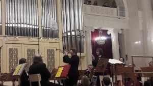 Накаряков встречает этот челлендж с поистине идеальной техникой дыхания и столь же совершенной чистотой звука. Проворные атаки стаккато буквально летают и порхают над зигзагообразно отзывающимся оркестром. По сравнению со звуками трубы «Полет шмеля» Римского-Корсакова кому-то может показаться лишь приятной прогулкой перед стометровкой или, извольте, перед забегом на длинную дистанцию, хотя произведение задумывалось Видманом, конечно же, не только как пара минут славы для трубачей. Тут же с обманчивой легкостью отзываются струнники оркестра филармонии, рождающие самые вариативные звуки с максимальной точностью под стать трубачу-виртуозу. Зал в восторге. Да, не в экстазе (это по другому адресу), а именно в ликующем таком восторге людей, которые по большей части мало чего ожидали. В восторге более честном, чем от впечатляющего внешним видом шарманщика, что-то там нашаманившего с шарманкой – так, что ее игру все слышали только в записи. Зато в оригинальном звучании.