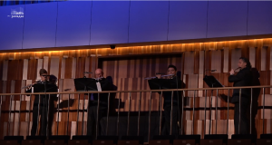 В пьесе – три пласта: струнные, олицетворяющие веру в ясность и устойчивость миропорядка, играющие всё время в одном темпе Adagio molto и под сурдину, квартет флейтистов, с функцией осмеяния и отрицания всего и вся, и 7 повторяющихся реплик трубы, задающей тот самый вопрос, оставшийся без ответа. Сам Айвз в пояснении к партитуре писал о партии струнных: «Это – молчание друидов, которые ничего не знают, ничего не видят и ничего не слышат». Друиды друидами и обезьянки – обезьянками, но явно прослеживается общерелигиозный подтекст, в первую очередь христианский, так как музыка у струнных – строгая, возвышенная, абсолютно тональная, близкая к барочной стилистике, но в которой есть нечто очень малеровское. Струнные сидят вполоборота к публике, как и полагается, но кажется, что они повернулись спиной к миру в молитвенном самопогружении, Их вера подобна непоколебимой скале. На балконе того сектора зала, к которой дирижёр обращён лицом и которая обычно не заполняется публикой (практику стоять лицом к оркестру, а не к публике, ввели Берлиоз с Вагнером), в этот раз расположились флейтисты (солисты РНО М. Рубцов, С. Игрунов, Н. Лотаков и солист ОРФ П. Алексеев), которым достались роли абъюзеров (модное нынче слово), издевающихся над глупыми верующими в эфемерное и недоказуемое, передразнивающих их и коверкающих мотив повторяющейся реплики трубы (Л. Коркин). Труба задаёт свой вопрос, на который никто и не ищет ответа: одни все ответы уже нашли, другие «вечными вопросами» не задаются.