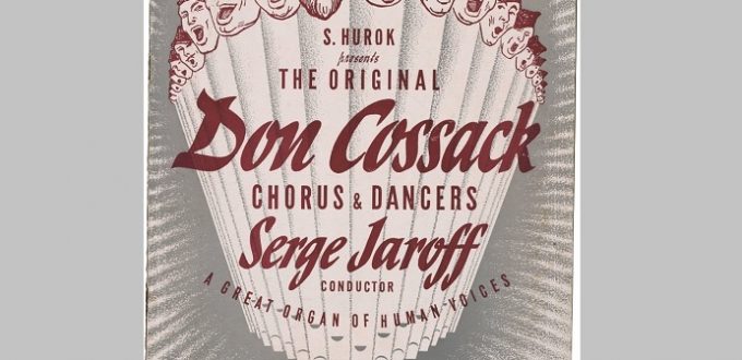 Среди документов музейного архива хорового дирижера Сергея Жарова внимание привлекает оригинальная обложка концертной программы. На ней изображен необычный орган – трубы увенчаны сверху изображениями поющих голов бравых казаков в папахах. Текст гласит: «Сол Юрок представляет оригинальный хор и танцоров донских казаков. Дирижер Серж Жаров. Большой орган человеческих голосов». Так начинались триумфальные гастроли […]