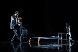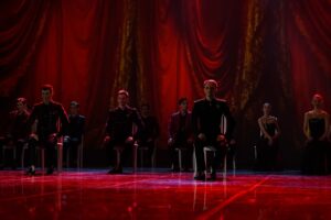 Начинается действие с этакого пролога, цитаты под музыку Даниэля Пембертона «Assassins Breathe», взятой из кинофильма «Меч короля Артура». Под экспрессивную композицию режиссер Гай Ричи в вышеупомянутой картине показал борьбу короля Артура. Наш же постановщик попытался в данный кусок вложить всю суть своего замысла. Но сей, так сказать, танцевальный довесок со стульями, увы, излюбленный приём кубанского хореографа: на стуле, со стулом, под стулом – и опять увы – ничего не добавляет и не формулирует.