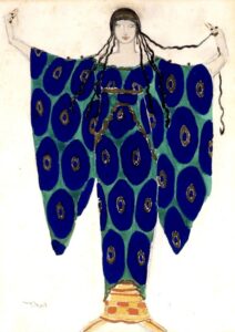 - Бакст Лев Самойлович (1866–1924) Эскиз костюма к спектаклю «Елена Спартанская» Трагедия в 4-х актах Эмиля Верхарна Музыка Деода де Северака Постановка Александра Санина для труппы Иды Рубинштейн театр Шатле, Париж, 4 мая 1912года