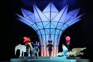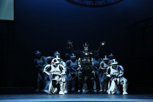 Другая образная сфера — роботы в духе «Звёздных войн»: они властвуют в мире мудрости. Зарастро — альфа-робот, у него самые высокие платформы на обуви, и он лидирует по количеству имеющихся на костюме лампочек. Часть хористов (и Зарастро) разодеты в золотую цветовую гамму, часть — в чёрно-белую, а Моностатос перевоплотился в чёрного робота и имеет отчасти «животные» очертания в дизайне костюма.