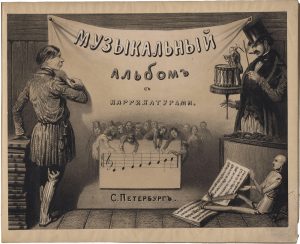 В коллекции Музея музыки имеется подобное издание – «Музыкальный альбом с карикатурами», опубликованный в 1848 году в Петербурге. Альбом подготовили композитор Александр Даргомыжский и художник Николай Степанов, его друг и родственник. Степанов был известным карикатуристом, дружил с Михаилом Глинкой и часто рисовал на него юмористические шаржи, на что Глинка нисколько не обижался.