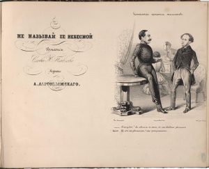 Романс Даргомыжского «Не называй её небесной» сопровожден рисунком, названным «Композитор, ценитель талантов». Сам Даргомыжский и его собеседник слушают музицирующую барышню: