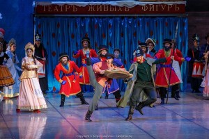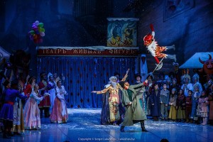 В «Петрушке» множество «маленьких ролей». Но они же – яркие портретные зарисовки. В многолюдье масленичного гулянья высвечиваются колоритные персонажи: представительный Главный кучер (Дмитрий Шемет), узнаваемо швыряющий деньгами Купчина (Денис Шпак), парочка соблазнительных цыганок (Валерия Грудина и Полина Захаренкова). Здесь же Главная кормилица (Диана Лысенко), вертлявые Половые (Андрей Посох и Павел Ушаков). Среди ряженых в явном ярмарочно-алкогольном угаре бесчинствовала «бородатая женщина» (Максим Берко), а Черт (Иван Захаров) выделывал веселые коленца, легко выпрыгивая в характерных «разножках». Зловещей суровостью веяло от одного вида Факира (Игорь Мицкевич)… Солисты тетра и артисты кордебалета с ясным пониманием, присущей им органикой и азартом разрешили творческую задачу. Гораздо более удивительным было глубокое проникновение в образ веселого и трагичного героя русского фольклора японца Такатоши Мачиямы. Его Петрушка был трогателен в своей беззащитности, но также отличался озорством и живой непосредственностью. Иван Савенков наделил Арапа тупой жадностью и звериной жестокостью, а Надежда Филиппова свою бездушную Балерину – сильными пуантами, пустой красотой и примитивной глупостью.