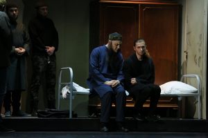 Контртенор Рустам Яваев в роли Орландо довольно убедительно выглядел в роли юноши, никем непонятого и зацикленного на своей невзаимной любви. Но, опять же, голос оставлял желать лучшего – зачастую оркестр перекрывал певца, а фиоритуры не удались полностью, хоть тембр звучал вполне органично. Это же можно сказать о Доринде (Елена Семенова) – уборщице-мусульманке в хиджабе, влюбленной то в Орландо, то в Медоро, и, в конце концов, приведшей Орландо в ислам, что сыграло свою роль в финальной трагедии. В любой другой музыке сопрано Семеновой звучало бы отлично, – но для барокко не хватило легкости и виртуозности; зато в актерском плане образ сложился.
