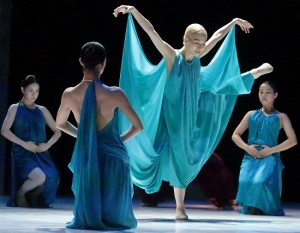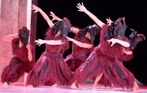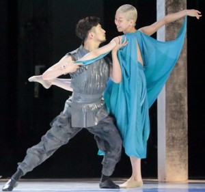Вместо индийского антуража, буйства классического и характерного танца – минимализм погруженной во мрак сцены (сценография Тсуоши Танэ), свободная пластика хореографического языка, элементы боевых японских искусств, пантомима, декламация.