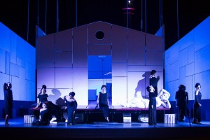 Уже традиционный в «Новой опере» режиссерский принцип оживления всего, что происходит на сцене, не исчезает и в этом спектакле – трио главных героев постановщик «разбавляет» десятком статисток, которые, видимо, призваны олицетворять чувства главной героини. Это не мешает им активно взаимодействовать с основными персонажами, и если их «общение» с соперниками Дженаро и Стеньо (Анджей Белецкий) могло быть вполне объяснимо, то откровенно эротичное их поведение с участием Маддалены во время ее же монолога выглядит весьма странно. Одной из таких статисток отведена особая роль: она сопровождает главную героиню на протяжении всего спектакля, следуя за ней тенью. И эта идея режиссера разъясняется в двух фразах героини: «Добро и зло душой моей владели», – говорит она, объясняя свою измену мужу, и, по-видимому, злом и является ее «тень». А в самом финале, уже после смерти обоих мужчин, неким многоточием звучит: «А эта ночь, такая темная, такая бурная, свою сестру не выдаст, не расскажет».