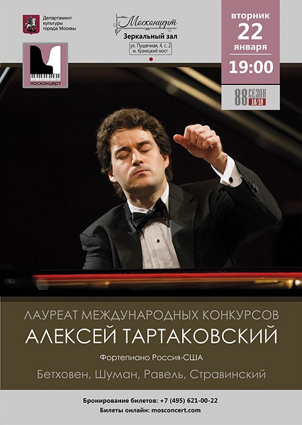 Москонцерт на Пушечной Зеркальный зал 22 января 19:00 Исполнитель: лауреат международных конкурсов Алексей Тартаковский (фортепиано) 1 отделение: Людвиг ван Бетховен (1770-1827) Соната для фортепиано №31 ля-бемоль мажор op.110 1. Moderato cantabile molto espressivo 2. Allegro molto 3. Adagio, ma non troppo Роберт Шуман (1810-1856) Фантазия для фортепиано до мажор (1836) Op. 17 2 отделение: Морис […]