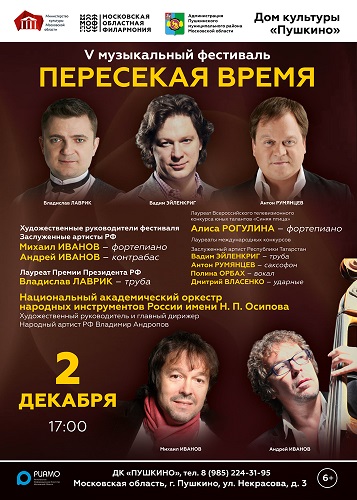 Московская областная филармония при поддержке Министерства культуры Московской области и Администрации Пушкинского муниципального района Пушкино, ДК «Пушкино» 2 декабря 2018 года, 17:00 Московская областная филармония при поддержке Министерства культуры Московской области и Администрации Пушкинского муниципального района представляет V юбилейный музыкальный фестиваль «Пересекая время». Фестиваль пройдёт 1 и 2 декабря 2018 года в Доме культуры «Пушкино» в […]