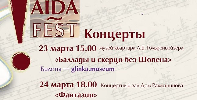 Творческое объединение ArtИст, II Открытый фестиваль Aida-fest, посвященный талантливому композитору и пианистке Аиде Петровне Исаковой. В рамках фестиваля будут проведены два тематических концерта, нереализованные при жизни выдающегося музыканта: «Баллады и скерцо без Шопена» Музей-квартира А.Б. Гольденвейзера 23.03.2019 в 15.00. Билеты: https://iframeab-pre2173.intickets.ru/node/11000319 «Фантазии» Концертный зал «Дом Рахманинова» 24.03.2019 в 18.00. Билеты: https://klassika-i-talanty.timepad.ru/event/902843/ В фестивале примут участие ученики класса А.П. […]