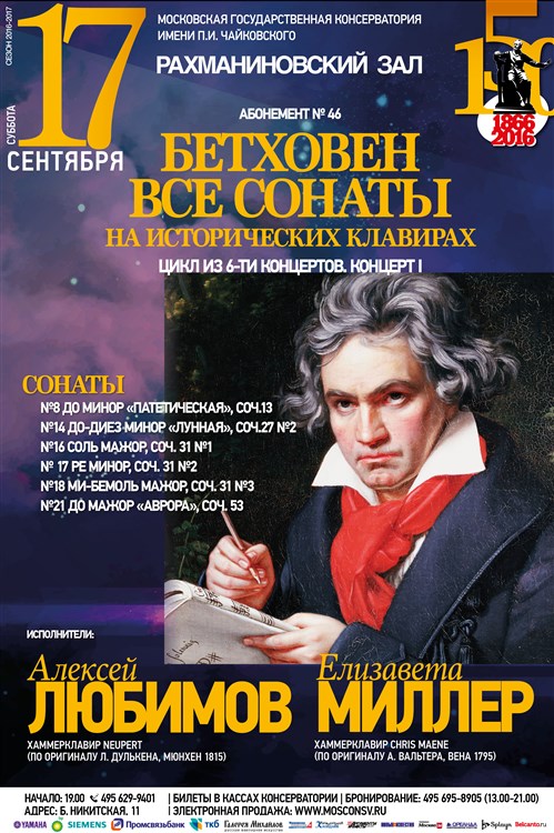 17 сентября в Рахманиновском зале Московской консерватории Алексей Любимов и Елизавета Миллер в первом концерте из 6-ти частного цикла «Бетховен. Все сонаты на исторических клавирах» представят сонаты великого композитора на хаммерклавире Neupert (по оригиналу Л. Дулькена, Мюнхен 1815) и хаммерклавире Chris Maene (по оригиналу А. Вальтера, Вена 1795). РАХМАНИНОВСКИЙ ЗАЛ КОНСЕРВАТОРИИ 17 сентября, суббота, 19.00 Абонемент […]
