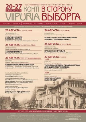 Музыкально-поэтический фестиваль «В сторону Выборга» стремится воссоздать лучшие образцы музыкальной и поэтической культуры Карельского перешейка. Музыкальные вечера проходят на камерных площадках исторических мест, таких как музей-усадьба И. Репина «Пенаты», музей «Келломяки-Комарово», Лютеранская церковь и Музыкальная школа искусств г. Зеленогорска, Библиотека Алвара Аалто и актовый зал выборгской Гимназии. В этом году фестиваль по традиции отметит памятные […]