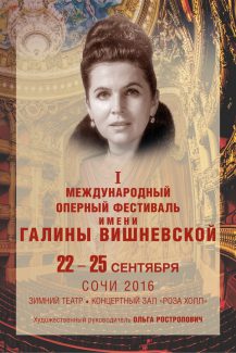С 22 по 25 сентября 2016 года в Сочи состоится I Международный Оперный Фестиваль имени Галины Вишневской, великой русской певицы, народной артистки СССР, полного кавалера ордена «За заслуги перед Отечеством». Учредителем Фестиваля выступает Центр Оперного Пения имени Галины Вишневской при поддержке Министерства культуры России, Администрации Краснодарского края и Администрации города Сочи. 25 октября 2016 года […]