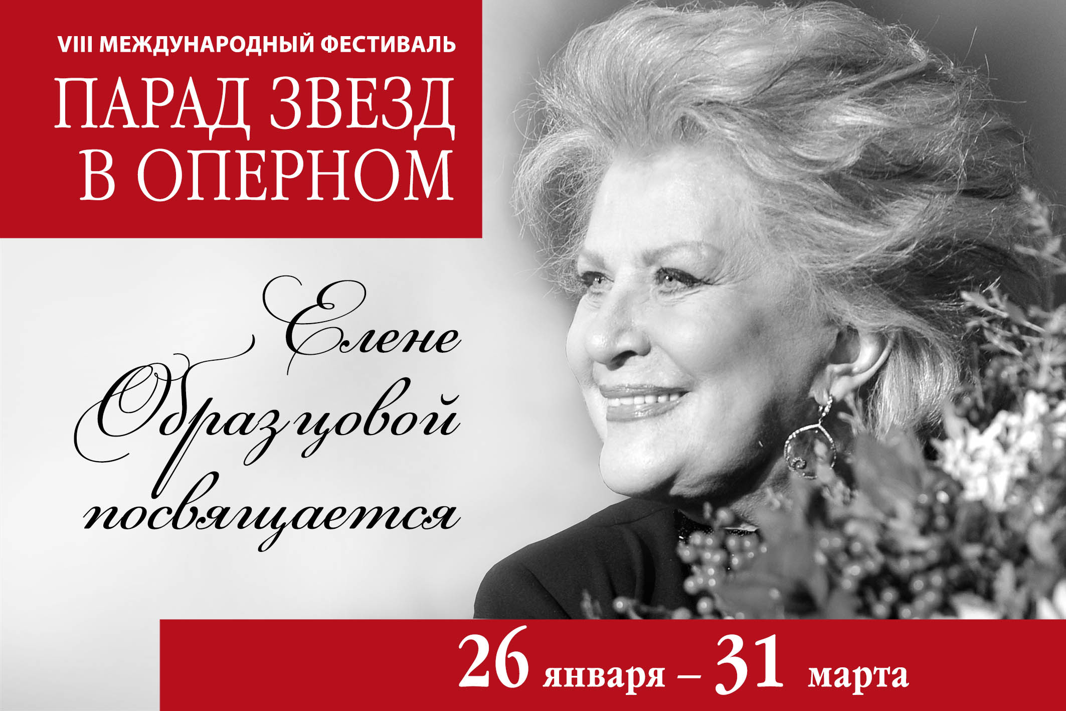 С 26 января по 31 марта в Красноярском театре оперы и балета состоится уже VIII Международный фестиваль «Парад звезд в Оперном». В этот раз он будет посвящен народной артистке СССР Елене Образцовой и пройдет при поддержке Международной академии музыки Елены Образцовой. Елена Образцова – выдающаяся советская и российская певица, оперный режиссер, артистка и педагог, обладательница […]