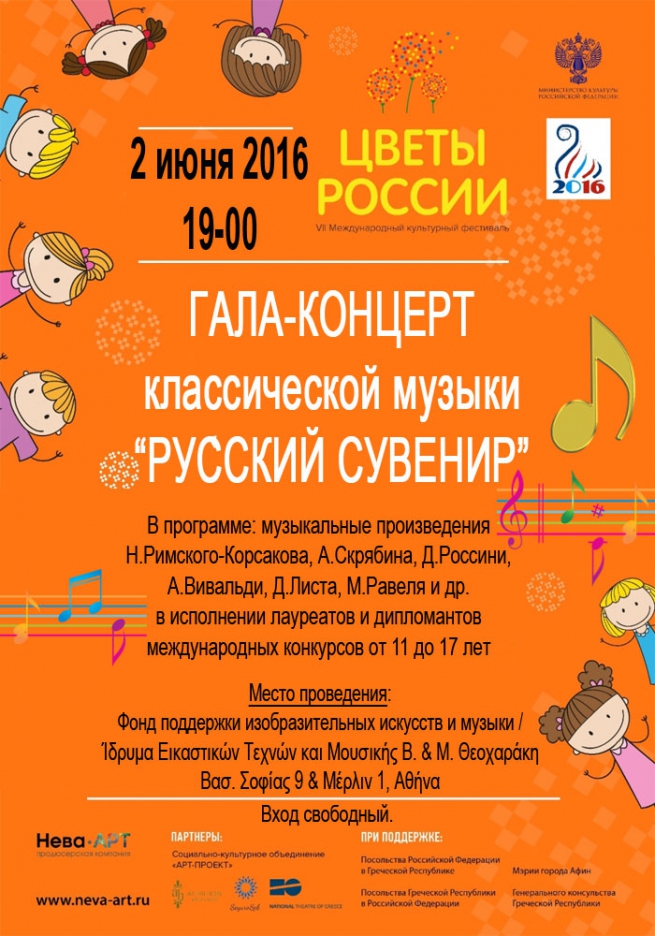Официальным открытием VII Международного культурного фестиваля в Афинах станет гала-концерт классической музыки «Русский сувенир», который ежегодно включается в программу и открывает публике авторитетную русскую исполнительскую школу, представляя своих самых талантливых юных музыкантов. Лауреаты и дипломанты всероссийских и международных конкурсов, ученики самых престижных музыкальных учебных заведений России в возрасте от 11 до 17 лет исполнят произведения русской […]