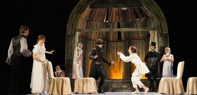 Казалось бы, резерв режиссёрских фантазий на тему «Евгения Онегина» Чайковского исчерпан. И всё же… Театру Зазеркалье удалось найти не затёртый постановочный ход, свою интимно-доверительную музыкальную, актёрскую, человеческую интонацию — и сказать своё. Никаких сногсшибательных вывертов! Просто особая, чутко угаданная тональность спектакля — щемящая нота ностальгии по тому, что безвозвратно ушло. И чему на смену […]