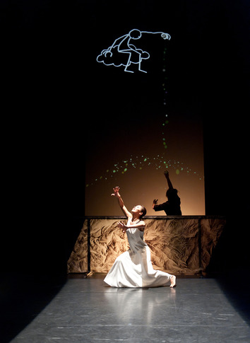 Об этом танцевальном спектакле компании Systeme Castafiore из Грасса можно было бы написать книгу философских эссе, а можно было бы сухо сказать: «10 картин, которые потрясли зрителя». Впрочем, впечатление можно резюмировать и теми же утверждениями, которыми спектакль начинается (и примерно ими же заканчивается): «Все мифические путешествия заканчиваются там же, где они начались…». Спектакль многопланов и многомерен. Сюжетную линию определил манускрипт XVI века, где рассказывается о чудесах, свершившихся в былые эпохи. Режиссер Карл Бискюи заколдовал пространство, населив его религиозными и мифологическими персонажами. Каждая картина – феерическая притча о том, что было с нашей планетой, что может с ней быть. Впрочем, их названия могли бы с тем же успехом разделами арт-проекта какой-нибудь биеннале современного искусства: смысл жизни, магия или мифическое путешествие и прочее. Виртуальная ведущая проецируется на тонкую экран-сетку, отделяющую зрителя от чудес, происходящих на сцене. За реальность отвечают пять танцовщиков, одна певица и одна актриса. В этом пульсирующем пространстве виртуально-живого мира действие происходит одновременно в трех планах: переднем (проекции снега, дождя, падающих звезд), среднем – движение, танец (или две плоскости, на которых танец и движение проецируются), и заднем – с дивной красоты проекциями картин Тёрнера, или загадочной планеты, или меняющих форму изображений абстрактной формы (декорации Жан-Люка Турне; костюмы Кристиана Бюрля). И над всем этим появляются еще и динамичные проекционные фигуры-сетки, будто всепроникающие гости, прилетевшие из будущего. Можно слушать философско-математические тексты-эссе между картинами, а можно отдаться красоте цифровой графики и зрелищности. Танцующий глаз на сцене – отражение глаза зрителя, который совершает медитативное путешествие в мире тайн и чудес, пытаясь разгадать технику происходящего. И подобно тому, как зритель XIX века был очарован картинами волшебного фонаря, фантазируя о жизни и театре будущего, так и зритель XXI века увидел за прозрачным экраном не просто танцевальные движения, изумительные по красоте (и простоте!) костюмы, но нечто большее. Это большее и есть принципиально новый театр, театр завтрашнего дня.