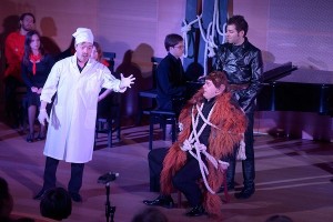 Сюжет оперы таков: в Россию прибывает иностранная делегация, гостям показывают выступление балерины Насти Терпсихоровой и других артистов, но особый интерес вызывает у них небывалое чудо – обезьяночеловек по кличке Оранго, которого с гордостью демонстрирует Зоолог. Оранго показывает, что он умеет делать – сморкаться, пользоваться вилкой и ножом, говорить «э-хе-хе» и наигрывать «Чижика», но внезапно он проявляет агрессию в адрес одной из дам, рыча на нее и называя «рыжей распутницей». Выясняется, что многие члены делегации связаны с ним: дама узнает в нем мужа, ее спутники – сводного брата, пасынка, ученика. Оказывается, Оранго в прошлом был журналистом, но в результате научного эксперимента, а также «житейских и политических ошибок» превратился в зверя. Присутствующим обещают поведать и представить в лицах его биографию – как он воевал, прибыл в СССР, был разоблачен и выдворен, женился, был куплен за полторы сотни долларов в Гамбурге и вновь привезен в Советский Союз – теперь уже в качестве зоологического экспоната…