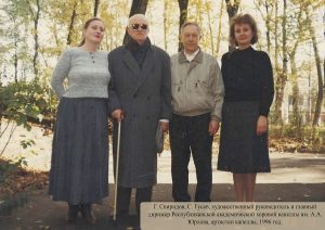 Последнее фото – отличается от остальных своим цветом. Это уже конец ХХ-го века. На нем – музыканты капеллы им. Юрлова и их новый руководитель, Станислав Дмитриевич Гусев. 1996-й год. И Свиридов здесь с ними – после концерта капеллы, на котором звучала его музыка. Музыка Свиридова стала вехой в истории этого коллектива. Он возрождался, креп, обретал истинное мастерство в исполнении его музыки, а Свиридов хотел писать все больше и больше, зная, что есть такие музыканты и такой дирижер, способный пойти за его даже самыми неожиданными и смелыми замыслами. Его музыка и сейчас часто звучит в концертах капеллы, а каждую осень проходит фестиваль «Любовь святая», посвященный Юрлову и Свиридову. Его название – по имени одного из хоров к спектаклю Малого театра «Царь Федор Иоаннович». И еще неизвестно, состоялся бы сам спектакль, не будь в нем музыки Свиридова, также написанной исключительно для Юрлова.
