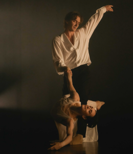 В начале спектакля Анна представлена в виде скульптурной фигуры, где почти все тело заковано в гипс, и свободны только руки, движение которых выражают ее состояние в браке с Карениным. Метафора эта очень хорошо читается, и можно даже сказать бьет своим решением прямо в лоб. С появлением Вронского куски гипса начинают отваливаться, символизируя ее освобождение. Спектакль построен на дуэтах и соло. Очень интересен первый дуэт Анны и Вронского символизирующий начало любовного романа, но несколько раз прерываемый возгласами Сережи. Это и были те первые точки, обозначающие начало ее внутреннего раскола. В этом эпизоде, пожалуй, удачно совпало все вместе: режиссура, хореография и исполнение. И в этом месте спектакль выглядел многообещающим. А вот дальше должного разрешения сложившегося напряжения не произошло. Режиссерски продолжение выглядело обоснованным. Вместо дуэтов спектакль продолжали соло героев, причем практически одновременно. Сцена поделена на два плана в одном страдания Анны, в другом жизнь независимого Вронского. Пересекаются они лишь однажды, когда Анна передает ему куклу, извлеченную из себя, изображая рождение дочери.