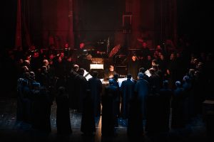 Концерт, называемый Festine lente (по-латыни «Торопись медленно»), и посвященный Арво Пярту, оставил у меня неоднозначные впечатления. Хотя сразу скажу, что все, что звучало, звучало очень качественно. Курентзис совместил здесь с музыкой Пярта, исполненной оркестром и хором MusicAeterna ансамбль Byzantiаеterna, состоящий из 12-ти исполнителей, отлично владеющих искусством строгого византийского письма (дирижер Антониос Кутрупис). Мне хотелось бы назвать данный концерт мудрым присловьем: Бог также нуждается в человеке, как человек в Боге». Казалось, что Курензис поставил задачу познакомить публику с пока что малоизвестным коллективом и помочь его оценить – по контрасту – с помощью известной и любимой многими – и профессионалами, и любителями, пяртовских пьес. Последние, в отличие от первых, могли звучать и полностью, и как лейтмотив (фортепианные «Вариации на выздоровление Аринушки»). Вторгающиеся в бескомпромиссно суровое пение звуки челесты, органа, струнных, фортепиано, голоса (превосходно прозвучал тенор Андрея Немзера в My heart’s in the highlands – «в горах мое сердце» на слова Роберта Бернса) приближали византийское пение к человеку. Ту же роль, видимо, выполняла подсветка мобильными фонариками темного пространства сцены и зала, слушающего эту композицию без аплодисментов. Думается, если в дальнейшем практиковать подобные композиции, хорошо бы, чтобы при разных драматургических соединениях каждая из составляющих частей была бы функционально равно значимой. Тем более что сам Курентзис является художественным руководителем этого коллектива, и он называется хор Bizantiaeterna.
