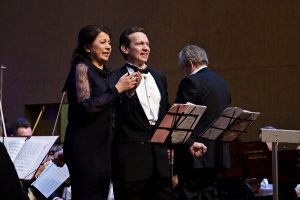Сольные партии исполнили: солистка Московского академического музыкального театра имени Станиславского и Немировича-Данченко Мария Пахарь (сопрано) и солист Мариинского театра Владимир Мороз (баритон).