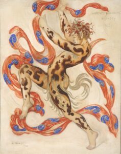 Бакст (Розенберг) Л.С. (1866 – 1924). В.Ф. Нижинский в роли Фавна. Эскиз костюма к балету Послеполуденный отдых Фавна. 1912