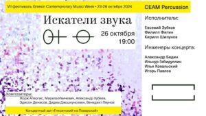 Нередко ударник становится homo universalis. В этом можно было убедиться на концерте «Искатели звука» (26 октября 2024 года), завершившем VII фестиваль «Gnesin Contemporary Music Week». Коллектив «CEAM Percussion» (Евсевий Зубков, Филипп Фитин и Кирилл Шипунов) представил композиции, основанные на взаимодействии ударных инструментов с различными объектами и электроникой.