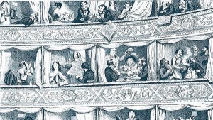 Что забавно, венецианские импресарио XVII века, с подачи которых в оперных залах появились ярусы лож, о социальной стратификации как раз не очень-то и думали. Хоть многие из них были аристократами, но венецианская знать была торговой, а не феодально-рыцарской, и придумывание нового оперного быта было для них операцией чисто коммерческой. Разместить зрительские места галереями в несколько этажей (а не амфитеатром) — простая экономия места. Если же кусок этой галереи выделить перегородками, то его значительно проще продать или сдать внаем — а это было жизненно важно, потому что на одной только торговле билетами бюджеты категорически не желали сходиться. И это было не запредельно дорого: поначалу порядка 25-30 дукатов за сезон, в то время как гонорар композитора за оперу (и художника за большую картину) исчислялся сотнями.