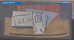 Работа написана маслом в 1921 году, в поворотный период в творчестве Пабло Пикассо, когда он обратился к смешению стилей. На картине изображен стакан абсента и фрагмент журнала. Сейчас она выставлена в музее Пикассо в Париже. В лотерее участвуют 200 тысяч билетов по 100 евро. Аукционная стоимость холста — около трех миллионов долларов.