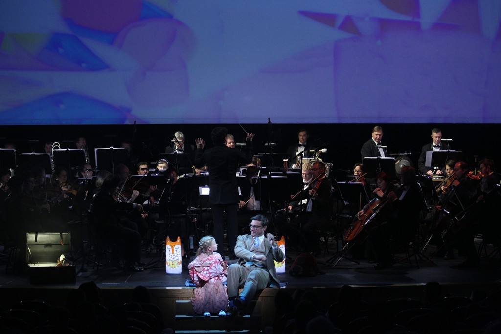 Отдельно хотелось бы сказать о мультимедиа. Художники видеоконтента Ян Калнберзин и Евгений Афонин создали яркий визуальный ряд, помогавший детям не уставать от прослушивания музыки. Ведь все мы знаем, как необходимы концентрация и усидчивость на концерте классической музыки. За счет визуального ряда эта проблема была полностью снята. После первого отделения дети вышли совершенно не уставшими и с нетерпением ждали второго. Хоть я и не со всеми фантазиями художников на музыку Бриттена была согласна, невозможно не отметить их потрясающую работу, ставшую настоящим украшением спектакля.