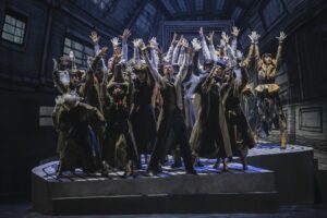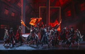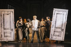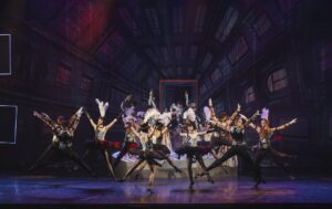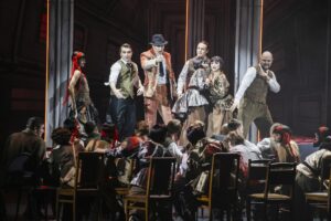 Очень хороши типажи основных персонажей и ансамбля первой части спектакля – костюмы, парики, гримы стильны, и вкупе с хара́ктерным танцевальным рисунком хореографа Ирины Ляховскаой точно работают на образ эпохи и жанр спектакля.