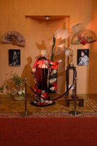 Кимоно и дзори, в которых Чио-Чио-сан появлялась на сцене, ее веера, фотографии, сделанные во время спектакля, стела, которую певица получила в награду – эти предметы, хранящие тепло дыхания и помнящие чудный голос Захаренко, представлены на выставке с любезного согласия ее супруга Николая Леонардовича Гуторовича.