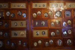 «Его Величество Шкаф» во время реставрации не покидал своё место. Роскошный предмет мебели выполнен по чертежам и эскизам самого режиссёра, к каждому ящичку прилагаются портреты поэта, писателя или философа, к произведениям которых обращался знаменитый основатель Художественного театра.
