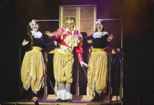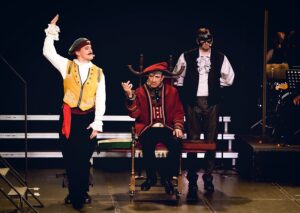 Исполнителя роли главного героя Сирано – приглашенного артиста театра Илью Жирнова — можно считать подлинным открытием фестиваля. Яркая актерская харизма и превосходные вокальные данные, включающие большой диапазон, позволили артисту создать многогранный портрет творца и бунтаря Сирано. Персонаж артиста в должной мере амбивалентен: он трагик и шут, герой и «Труффальдино» в одном лице. Роксана в подаче Полины Новоселовой отмечена пылом и отчаянностью; рисунок ее роли пронизан драматическим нервом, чему способствует крепкий мюзикловый вокал. Не чуждо Новоселовой и комикование: так, артистка мгновенно перевоплощается в свое альтер эго – пухлощекую хохотушку дуэнью, а затем исправно возвращается к лирической героине. Звание главного мастера перевоплощений по праву достаётся Евгению Бушуеву, попеременно исполняющего роли актера бурлеска Монфлери, Капуцина, Мушкетера и Гасконца.  Главных героев оттеняет и кондитер-добряк Рагно (Алесей Глухов) со своей супругой кокеткой Лизой (Анастасия Филимонова). Петр Степовик эффектно отыгрывает возлюбленного Роксаны Кристиана, несколько наивного, неотесанного, неуклюжего, то и дело попадающего в нелепые ситуации. Эффектна и убедительна обладательница яркого вокального тембра Елена Руссу в «брючной роли» Карбона, верного друга Сирано, придающая данному образу нарочитую воинственность. Воинственность и жесткость другого порядка демонстрирует Владимир Алексеев, убедительно создавая образ властного самодура графа де Гиша. В интригах ему вторит бездарный актер и дуэлянт де Вальвер (Алексей Березюк).