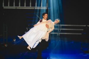 Визуальную реальность мюзикла обогащает и хореография Александры Столяровой, ловко жонглирующей разными жанрами и стилями, создавая, таким образом, объемно-смысловой пластический контрапункт. Густонаселенная сцена «театра в театре» в прологе мюзикла решена средствами современного танца.  Батальные сцены усилены чеканными маршами, а решающее сражение подчеркнуто движениями танго в рапиде. Движения монахинь отрешенно-меланхоличны и содержат элементы стиля джаз-модерн. Сцены Рагно и Лизы сопровождаются классическими па.