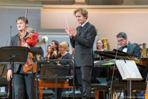 Грандиозный финал с увеличенным количеством ударных, фанфарами меди, когда МГАСО в тутти словно взлетал к небесам, предвещал сотворение мира и утверждался в роскошном, «голливудском» (определение Тимофеева) до-мажорном аккорде. Но и контрастные эпизоды — мягкие, светлые, хрупкие — были очерчены музыкантами тоже крайне ясно. Мелодия у челесты (Даниил Цветков) на фоне арфы (Валерия Вощенникова) сменялась звучанием флейт и колокольчиков, рисовавших образ райского сада с пением диковинных птиц. Позднее в этот островок тишины вплеталась искусная кантилена скрипки (Александра Демидова). Всю роскошь оркестра Бориса Чайковского коллектив и его художественный руководитель Иван Никифорчин щедро дарили слушателям.