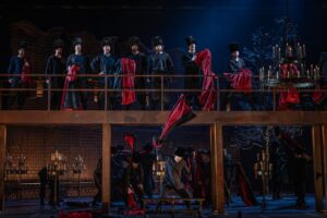 К сожалению, в этот раз у меня не было возможности посмотреть/послушать оба премьерных состава. Я побывал только на втором (впрочем, судя по отзывам, он оказался не хуже, а в чем-то, возможно, и лучше первого). Открытием стала молодая Полина Панина (Любаша), впервые представшая в столь значительной партии, продемонстрировав серьезный потенциал. Хорошее впечатление оставили Ирина Боженко (Марфа) и Валерий Макаров (Лыков). Достойные работы показали также Виталий Ефанов (Собакин), Данил Князев (Малюта Скуратов), Дмитрий Пьянов (Бомелий). Сложнее с Грязным. Ришат Решитов, недавно принятый в труппу, обладает солидными вокальными данными и несомненными актерскими способностями. Но один существенный недостаток несколько портит картину: на верхних нотах он начинает даже не кричать, а прямо-таки реветь. (Ему бы хорошего педагога, умеющего исправлять дефекты школы. Певец-то очень перспективный.)