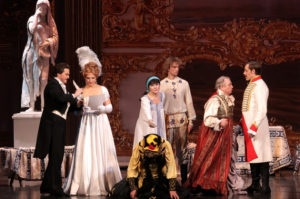 Во дворце, расположенном в Гатчине дворовые люди развлекают графа песнями. Он рассказывает камердинеру о своих истинных намерениях относительно Леблан: он хочет стать любовником очаровательной актрисы, и для прикрытия ему нужен ее брак с Андреем. Появляются другие действующие лица, звучит блистательная песня Никиты («Эй, гусар!»), нежный дуэт Андрея и Виолетты. В дуэте Поленьки и Митруся цитируется украинская песня «Солнце низенько». Граф, танцуя с Виолеттой, предлагает ей стать женой Андрея, полагая, что она понимает его истинные цели. Виолетта соглашается, но не догадывается о намерениях Кутайсова. Начинается балетный дивертисмент. Тем временем камердинер сообщает графу, что Андрей и Виолетта любят друг друга, а значит, планы графа под угрозой. Кутайсов вне себя. Он зовет дворовых людей и объявляет гостям, восхваляющим молодую чету, что холопы поздравляют своего собрата, ведь Андрей, хоть и учился в Париже, остается его крепостным, а значит, холопкой станет и Виолетта, выйдя замуж за него. Девушка упрекает Андрея в предательстве, он убегает и покидает усадьбу, угнав лучшую тройку графа.