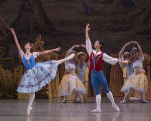 Виртуозная техника отличает произведение, наряду с его кипучей веселостью. Артисты буквально купаются в своих ролях, легко переключаясь с бурлеска на лирическую комедийность и элегическое настроение. Сочными красками нарисованы портреты Аленов. Персонаж Дениса Колесникова скорее глуповато-наивный, Александра Ермохина — уморительно-трогательный. Михаил Шулаев, Алексей Калинин в роли комической старухи Марцелины. Невозможно сдержать улыбку, когда эта разгулявшаяся гусыня прыгает, играя юбкой, a la Люсиль Гран в «Романтическом pas de quatre».  Никита Филонов в роли зажиточного мельника Мишо тоже раскованы и очень колоритны.