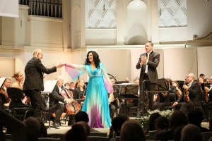 Оркестр нисколько не уступал именитой гостье в этот вечер. На слушателей буквально обрушился каскад музыкальных красок из концертной увертюры Элгара «На юге» и из «Румынской рапсодии №1» Энеску. Трогательное исполнение Интермеццо из «Сестры Анджелики» Пуччини и «Последнего сна Богородицы» Массне удачно гармонировало с лирическими ариями, а знойная рапсодия «Испания» Шабрие своим характером предвосхитила Хабанеру.