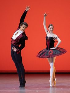 Но главное наполнение фестиваля Бенуа-2019 обеспечила хореография Джона Ноймайера, в два вечера уместились аж 6 номеров в его хореографии — по совокупности могли бы составить целое отделение гала. Два дуэта из «Дамы с камелиями», конечно же, хорошо известны, а вот четыре номера из обширного творческого багажа балетмейстера, похоже, в Москве ранее не исполнялись. Лучшими из ноймайеровских «новинок» стал изумительной строгости и целомудрия «Танец блаженных душ» из оперы «Орфей и Эвридика», который был исполнен артистами балета Джоффри Викторией Джайани и Темуром Сулуашвили, вслед за номером с таким же названием в хореографии Аштона (исполнял премьер Большого театра Денис Родькин, который как-то нечувствительно обошелся и с музыкой Глюка, и с хореографией Аштона) Второе событие – финальный номер фестиваля — фрагмент из «Героической симфонии» на музыку Бетховена в исполнении пары протагонистов Ноймайера — Лаудере и Ревазова.