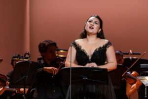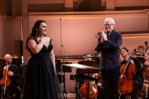 Не разочаровала и солистка — лауреат 1 премии второго международного конкурса вокалистов и концертмейстеров Хиблы Герзмава Самира Галимова. Эстетика сочинения Респиги ей оказалась впору: ласкающее слух сопрано певицы звучало, в основном, на нюансе пиано (как и должно быть по нотному тексту). Лишь в драматической кульминации, где говорится о смерти возлюбленного, в динамическом арсенале Галимовой появились форте и фортиссимо, но совсем ненадолго, чтобы потом певица снова перешла к тихому оттенку.