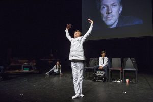 Постановка двухэтажная  – внизу на сцене подростки проходят кастинг, а наверху, на экране, транслируются  их лица крупным планом на экране, перемежающиеся съемками профессиональных актеров.
