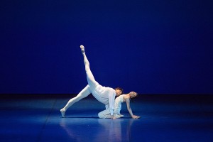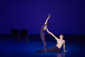 Ксения Овсяник и Дмитрий Семионов из Берлинского государственного балета привезли два дуэта. В первом – фрагменте балета Начо Дуато «Многогранность. Формы тишины и пустоты» (музыка И.С.Баха) – артистка олицетворяет виолончель. Задумка, быть может, оригинальная, но при сценическом воплощении приобретшая черты примитивности. Музыкант держит в руках палку. Это смычок, который «пилит» по груди и бедрам женщины-виолончели. А она покусывает деревяшку… Танцовщик-виолончелист по-всякому вертит свой инструмент, в попытке исторгнуть из него гармоническое звучание… Большего художественного результата достигли артисты, исполнив «Интимную дистанцию», автором которой стали братья Отто Бубеничек (музыка) и Иржи Бубеничек – хореография.