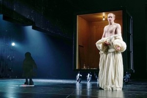 Текст здесь — лишь одно из средств (как и в принципе в постдраматическом театре), но вовсе не главенствующее. При этом сам спектакль фактически — сюжетный. Режиссёр разбивает текст на отрывки и по-разному их комбинирует. Слова подаются двумя способами: либо скандируются с надрывом, как правило, в сочетании с музыкой, либо читаются тихим, чуть ли не сорванным голосом в полной тишине. «Усреднённая» декламация, конечно, тоже есть, но она в данном случае не показательна. Этими крайностями создаётся особый эффект: актёр словно достигает эмоционального предела и проваливается в пустоту. Но это падение стоило того, чтобы хоть немного прожить «на максимуме». Для «полутонов» есть другие режиссёры.