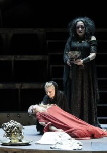 Далее возможность принимать решения и действовать переходит к самой Сервилии — она не беспомощна, как Марфа в “Царской невесте”. Она идет за помощью к “великой волшебнице” Локусте (Ирина Березина), и здесь же выслушивает страстные признания вольноотпущенника, бывшего раба Сорана Эгнатия, предавшего всех сенаторов только для того, чтобы завоевать себе Сервилию как добычу.