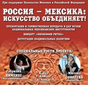 14 мексиканских национальных музыкальных инструментов преподнесут в дар Всероссийскому музейному объединению музыкальной культуры имени М.И. Глинки Посольство Мексики в РФ и Фонд культуры им. П.И. Чайковского в Мексике. Церемония состоится 27 июня в Музее «П.И. Чайковский и Москва». В фонды музея одновременно поступит беспрецедентное количество музыкальных инструментов, известных в нашей стране лишь узкому кругу специалистов. Этот ценный подарок символизирует многолетние дружественные отношения и тесное культурное сотрудничество между Россией и Мексикой.