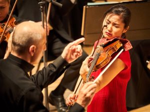 Сольную партию в Первом скрипичном концерте Сергея Прокофьева ре мажор, соч.19 виртуозно исполнила молодая японская скрипачка Саяка Сёдзи. Ее уникальная скрипка Elman Stradivarius (1729) звучала поэтично и нежно, пленяя своим ярким спектром оттенков.